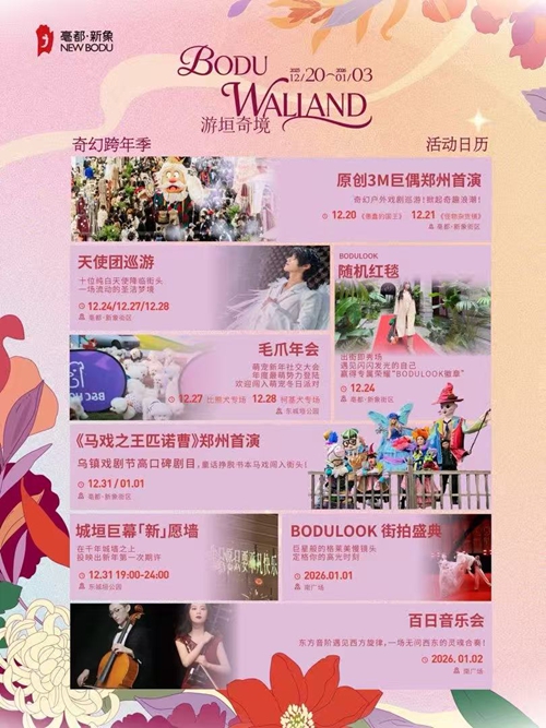 烏鎮(zhèn)戲劇節(jié)熱門(mén)劇目《馬戲之王匹諾曹》鄭州首演,帶你闖入夢(mèng)幻童話世界;市民心愿將通過(guò)城垣巨幕“新”愿墻映上古老城墻,讓歷史見(jiàn)證美好憧憬;街拍盛典解鎖“巨星待遇”;格萊美級(jí)慢鏡頭定格高光瞬間;百日音樂(lè)會(huì)中西交融的旋律流淌街巷;竹藝美陳織就古今漫游動(dòng)線,邀全城市民共赴跨越時(shí)空的迎新之旅。